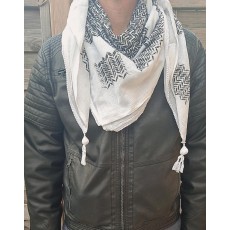 Nous vous proposons ce véritable keffieh de Palestine blanc et noir, 100% coton.